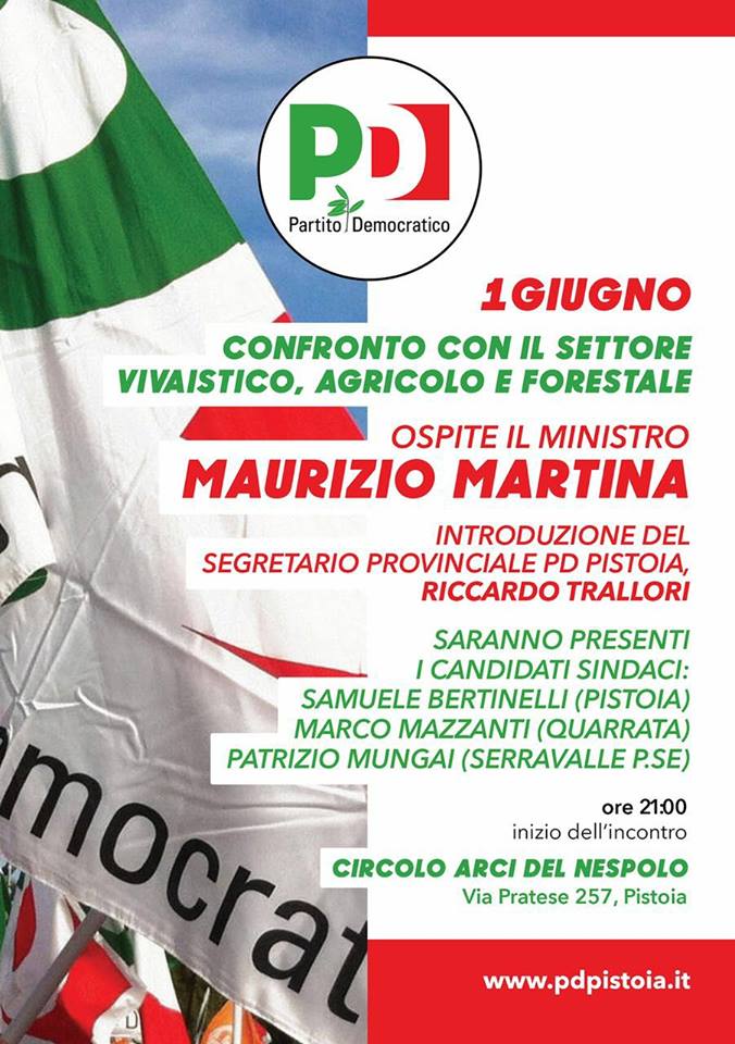 Pd Coordinamento Provinciale Pistoia: incontro con il ministro Maurizio Martina