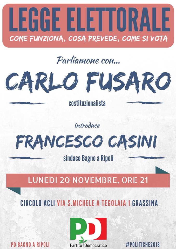 PD Bagno a Ripoli, incontro con Carlo Fusaro “la legge lettorale”