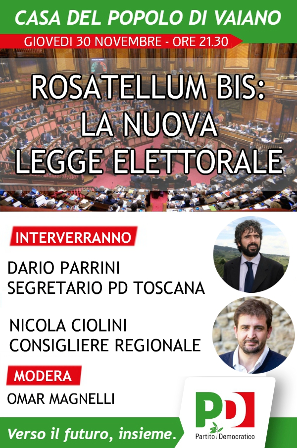 PD Vaiano, incontro sulla nuova legge elettorale Con Dario Parrini e Nicola Ciolini