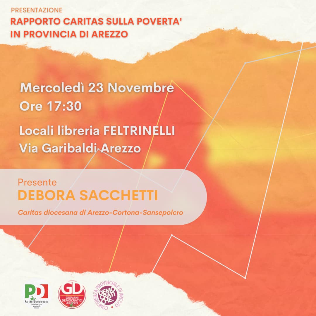 Mercoledì 23 Novembre, alle ore 17:30, presso i locali della libreria Feltrinelli in via Garibaldi ad Arezzo, si terrà un evento di presentazione “Rapporto Caritas sulla povertà ad Arezzo”.