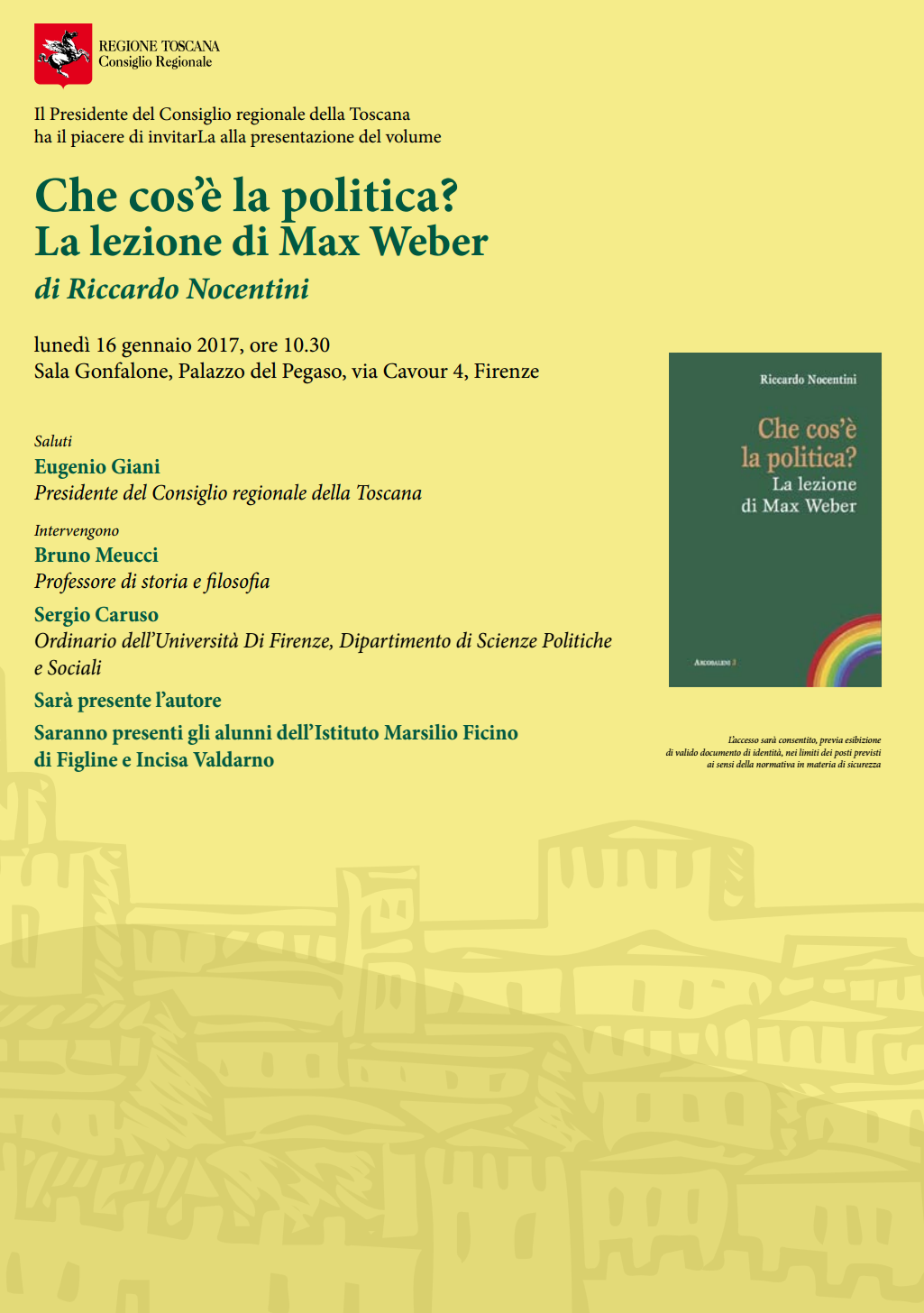 Presentazione libro di Riccardo Nocentini “Che cos’è la politica? La lezione di Max Weber”