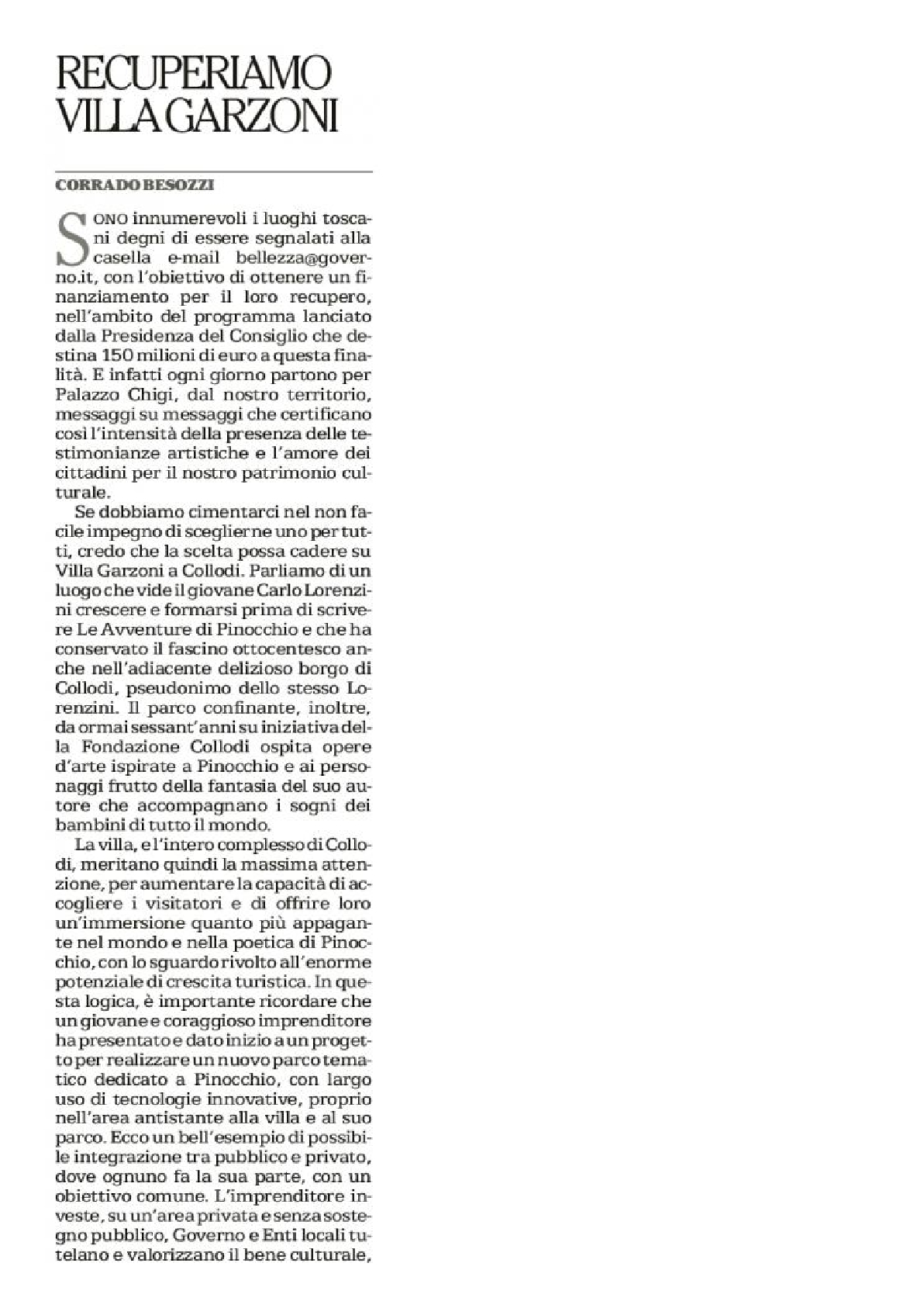 Recupero beni culturali. Besozzi a Repubblica: “Dovessi sceglierne uno per tutti? La villa di Collodi”