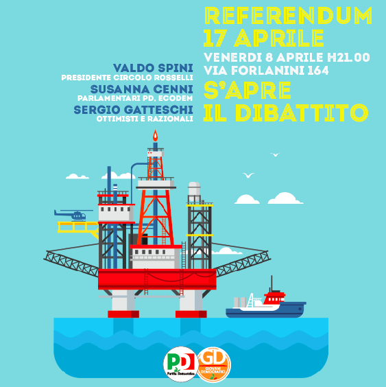Il PD Metropolitano e Cittadino, assieme ai Giovani Democratici, organizzano per questo Venerdì (08 Aprile 2016) un dibattito sul Referendum di Domenica 17 Aprile, in cui si confronteranno le diverse posizioni e ci sarà ampio spazio per domande e interventi dalla platea.