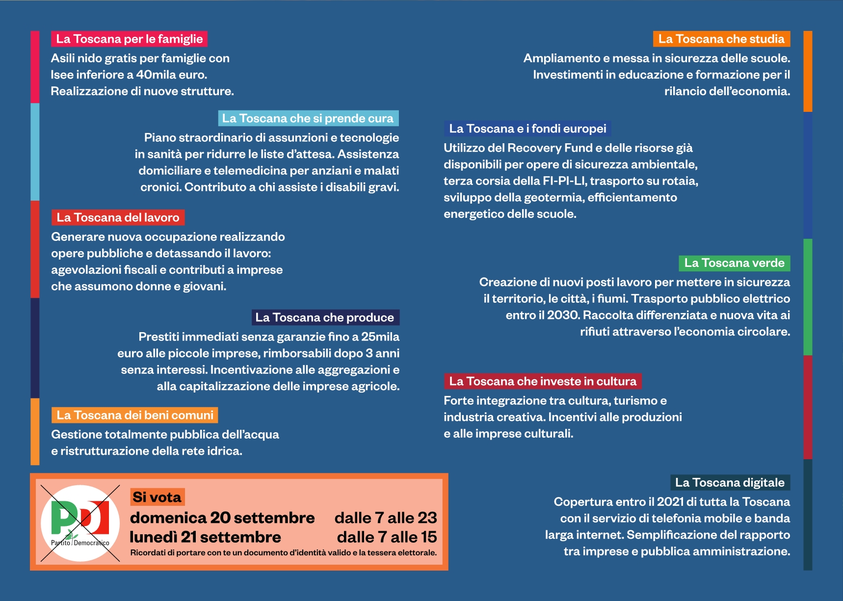 Home » Tutti gli articoli » Elezioni 20 e 21 settembre. 10 proposte del Pd della Toscana per il programma di governo regionale