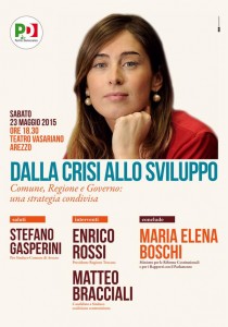 Nel pomeriggio il Ministro Boschi, Rossi e Parrini, saranno ad Arezzo alle ore 18.30 al teatro Vasariano per una iniziativa con il candidato sindaco Matteo Bracciali, insieme al Pro Sindaco Stefano Gasperini e ai candidati aretini al consiglio regionale.
