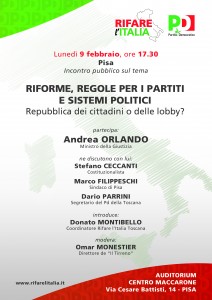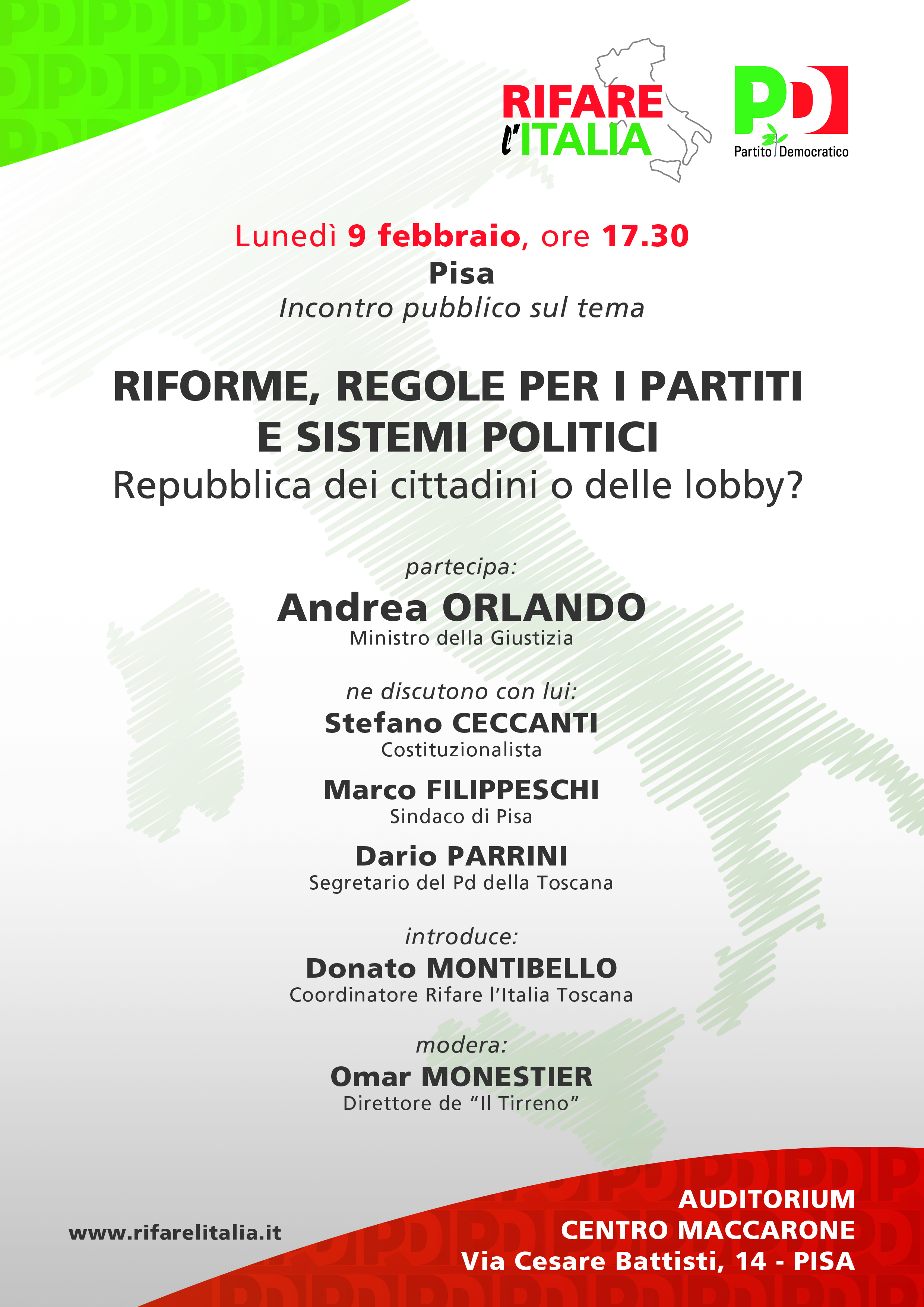 “Riforme, regole per i partiti e sistemi politici. Repubblica dei cittadini o delle lobby?”. Incontro organizzato da “Rifare l’Italia”