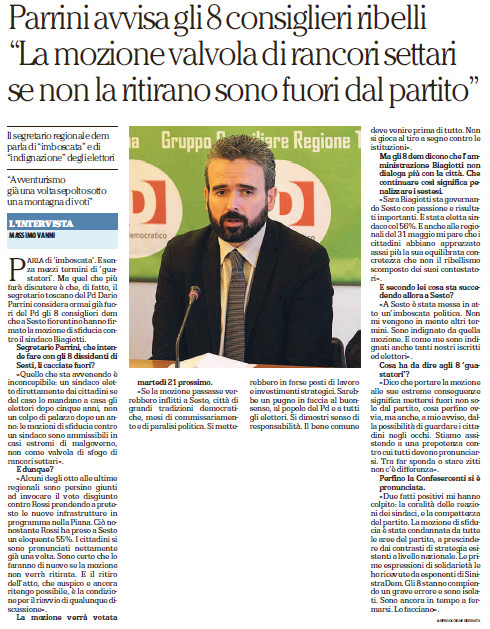 Segretario Parrini, che intende fare con gli 8 dissidenti di Sesto, li cacciate fuori?