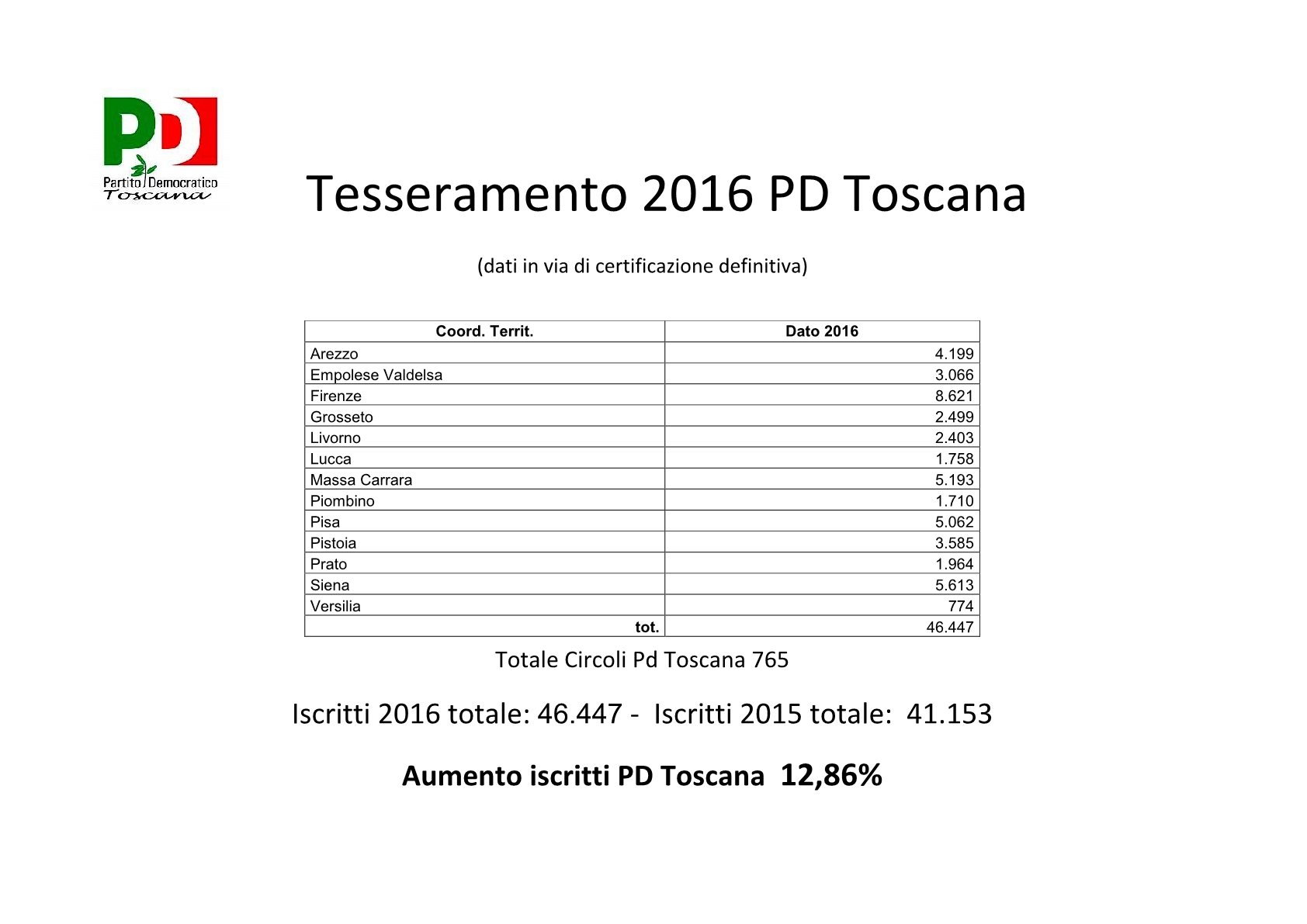 Tesseramento al Pd in Toscana +12,86 percento. Ecco i dati per federazione