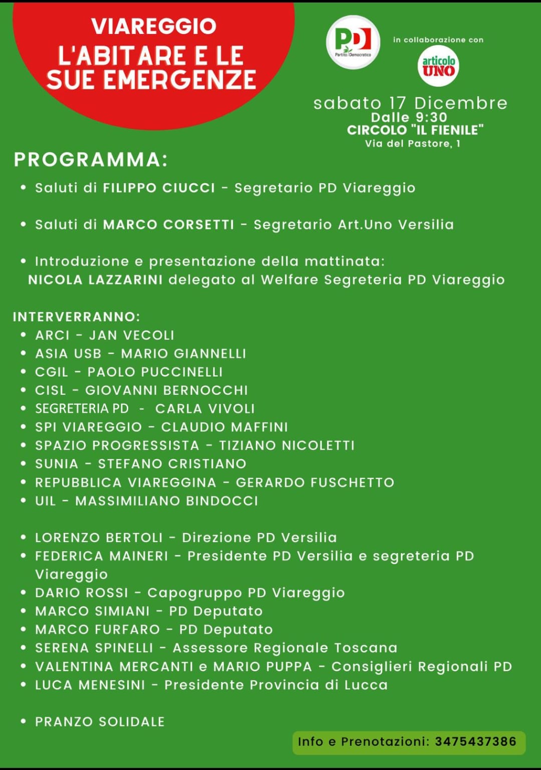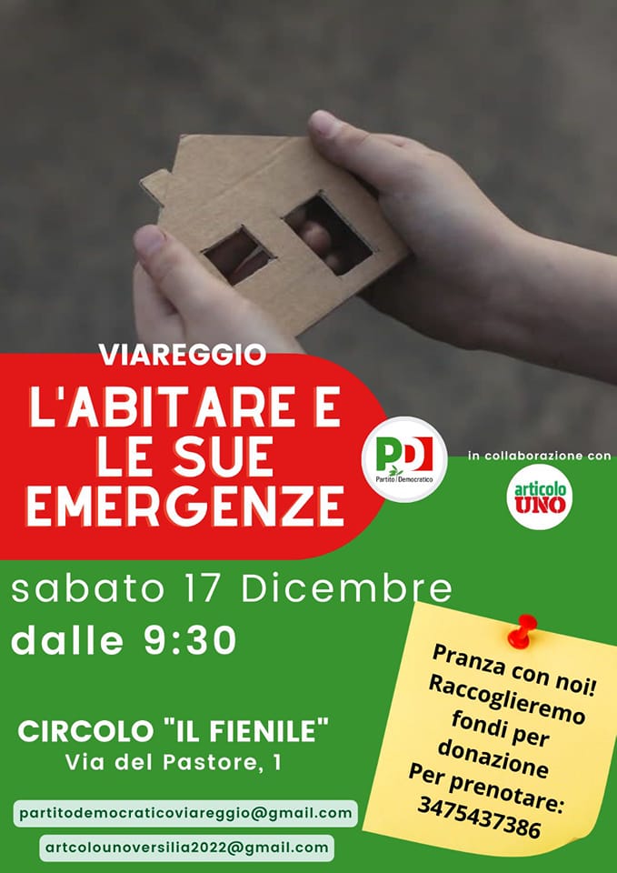 Il Partito Democratico di Viareggio, in collaborazione con Articolo UNO – Versilia organizza l’incontro dal titolo “Viareggio. L’Abitare e le sue emergenze”, sabato 17 dicembre alle 9.30, presso il Fienile – Viareggio, Q.re Varignano.