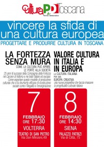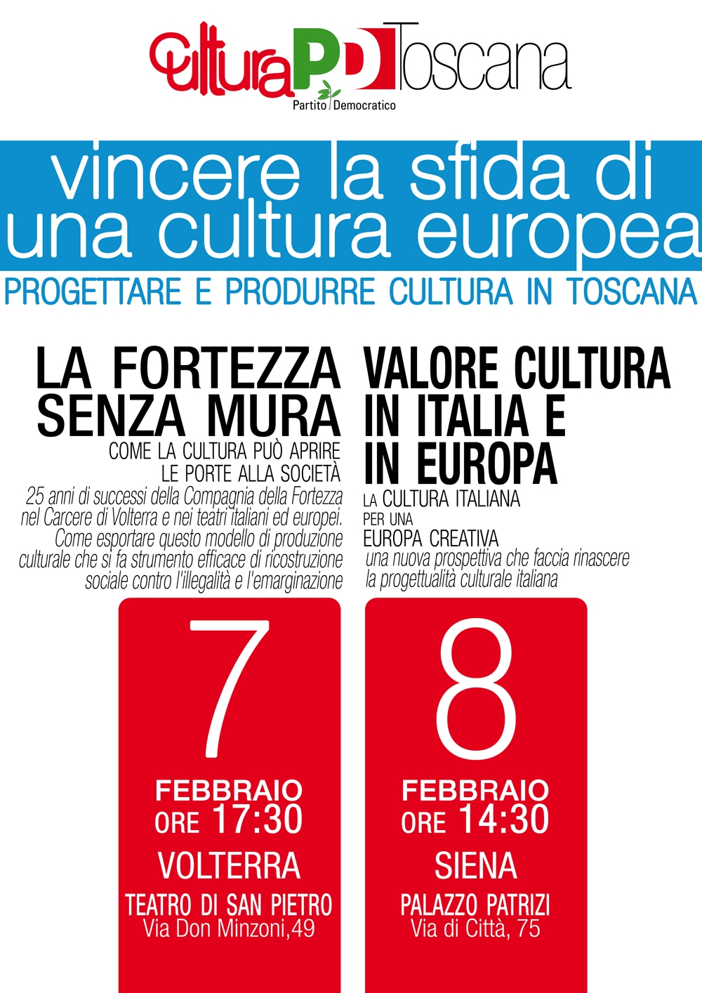 Il percorso che abbiamo fatto come Gruppo Cultura del PD Toscana ci ha portato a comprendere sempre di più come produzione culturale, valore artistico,sviluppo sociale ed economico siano collegati e quanto urgente sia la necessità di rilanciare la sfida di una nuova prospettiva che faccia rinascere la progettualità culturale italiana in Europa e in Italia. Abbiamo quindi pensato, con il segretario Ivan Ferrucci, di organizzare una due giorni toscana di Cultura: