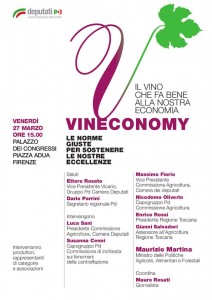 QUI IL PROGRAMMA DELL’INIZIATIVA promossa dal Gruppo PD alla Camera dei deputati che si terrà a Firenze il 27 marzo sul tema delle politiche agricole, in particolare sui nuovi provvedimenti che riguardano un settore fondamentale della nostra economia, il vino.