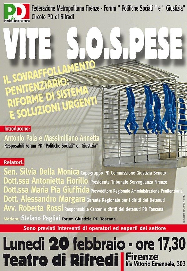 I Forum Politiche sociali e Giustizia della federazione metropolitana del Pd di Firenze hanno organizzato, in vista della imminente conferenza programmatica, una importante iniziativa pubblica dal titolo “Vite S.o.s.pese” sul tema del sovraffollamento penitenziario.